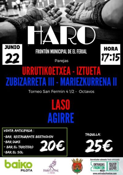 La Pelota a Mano Profesional vuelve a Haro este 22 de junio en el Frontón de El Ferial