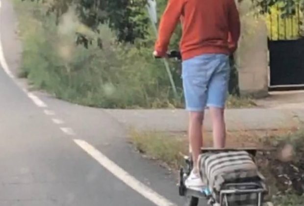 La Guardia Civil intercepta en Ollauri a un individuo en patinete por la N-232 arrastrando un carro de la compra