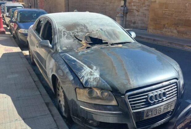 Un coche estacionado en la calle de la Vega en Haro con signos de haber sufrido un incendio despierta comentarios en la ciudad
