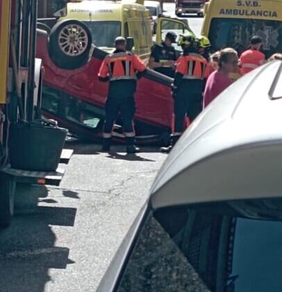 Un coche termina boca abajo en pleno casco urbano de Nájera
