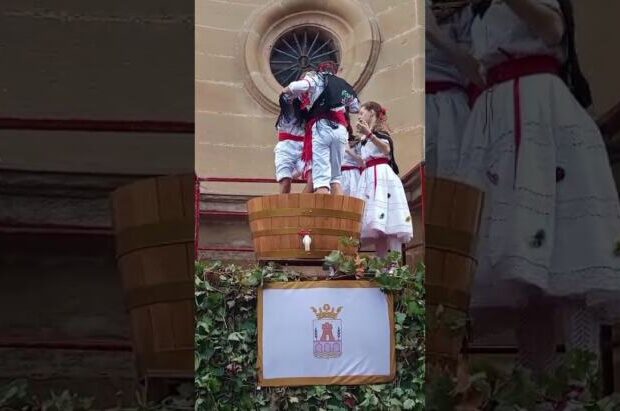 La ofrenda del primer mosto al patrón es uno de los actos destacados de las fiestas. (Vídeo de Chema Iturbe)