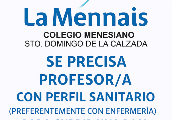 Se precisa docente de perfil sanitario. Publicado por:Colegio Menesiano de Santo Domingo