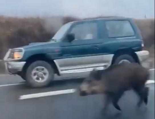 ARAG Asaja en su cuenta en Twitter del peligro que se ha vivido en la A-12, en el Alto de San Antón, cuando un jabalí corría ...