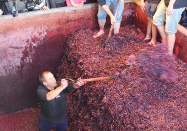 El pisado de la uva, antiguo método de elaboración del vino de Rioja, que estuvo en desuso en la región durante más de 40 años, volvió ...