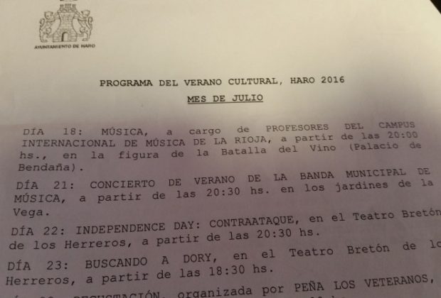 El PP de Haro asegura que Cultura les hizo llegar el programa completo del Verano Cultural diez minutos antes de su presentación