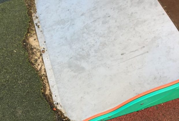 Esta imagen pertenece al parque infantil situado junto a la pista de patinaje de El Mazo, como se ve están los tornillos a la vista y ...