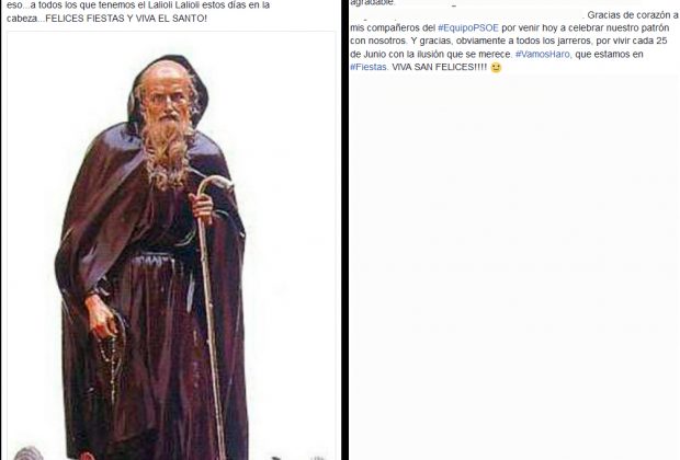 Vaya tela lo de esta Alcaldesa, felicita las fiestas en su facebuk a los de Sto. Domingo con una foto de metro y medio del Santo ...