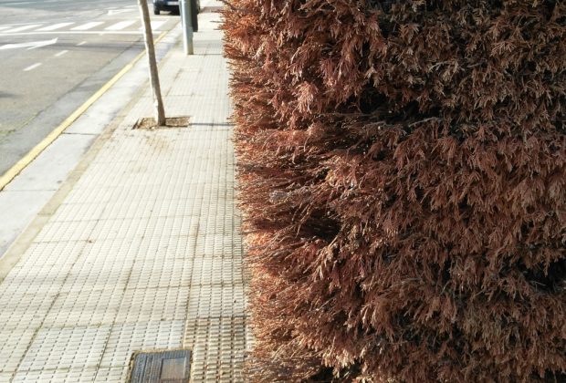 ESTOS SETOS ESTAN OCUPANDO AL MENOS UNA BALDOSA DE LA ESTRECHA ACERA, DONDE SI HAY UNA SILLA DE BEBE, HAY QUE BAJARSE A LA CARRETERA PORQUE ...