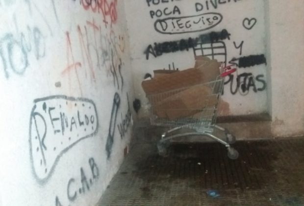 Lleva este carro ahí 3 días, esos orines huelen y también hay pintadas. Adecentar un poco esta zona y poner cámaras de vigilancia, da asco esta zona ...