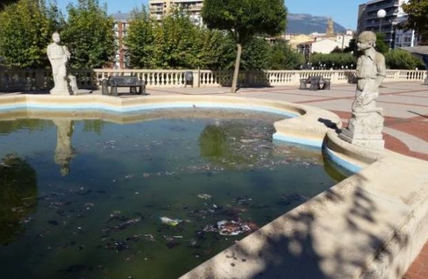 Palomas muertas por todos los sitios, todos los parques llenos de suciedad, da asco cómo tenemos Haro, al de los pantalones verdes decirle que si se ...