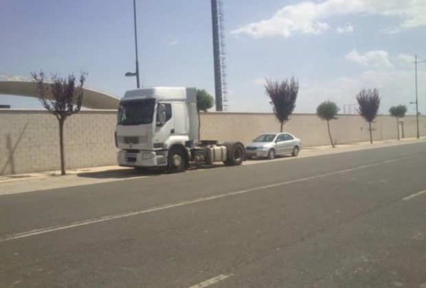 Estacionamiento continuado de camiones en la calle Julián Fernández Ollero. ¿Esto qué es? ¿El polígono industrial o una urbanización para el descanso? Fotodenuncia enviada por Alfredo79.