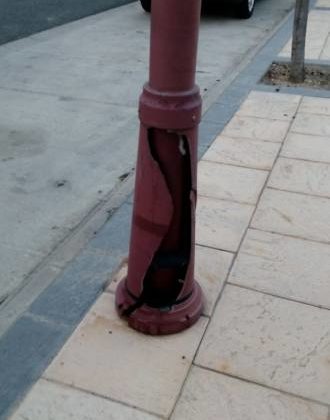 Esta farola está reparada en su base con cinta aislante. De traca. Fotodenuncia enviada por Chispas