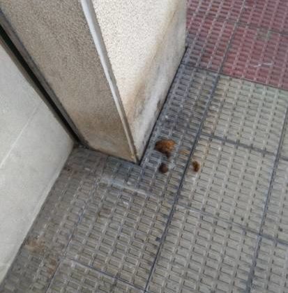 Se agradece que nos dejen flores en la puerta del portal. CERDO!!!