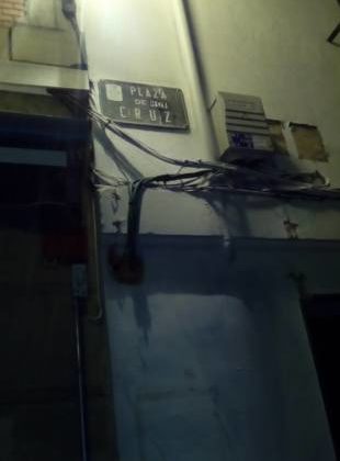 En el cartel de `Plaza de la Cruz´ hay una pegatina