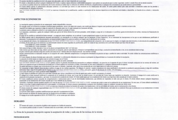 En la parte posterior del “contrato del cliente”, a través del que los cursillistas aportan los datos necesarios para inscribirse en las diferentes actividades, figuran las ...