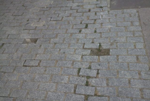 ESTOS ADOQUINES LLEVAN DESAPARECIDOS TODO EL VERANO Y ACTUALMENTE FALTAN MUCHOS MAS .PERO LA POLICIA YA LO SABE Y NO HACE NADA SOLO PINTAR LINEAS AMARILLAS ...