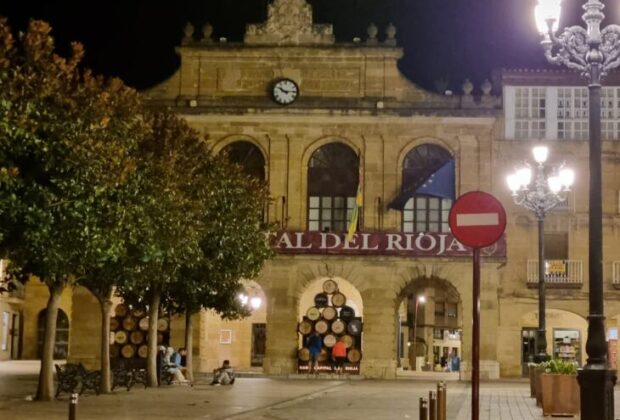Otro edificio con las luces a pagadas. El banco de España y el Bretón las mantienen encendidas.
