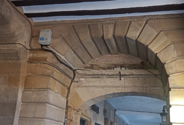 Eso es, chapuzas a domicilio. Cosas del tripartito que permiten estas instalaciones en el centro de Haro, un montón de cables al tresbolillo, con una especie ...