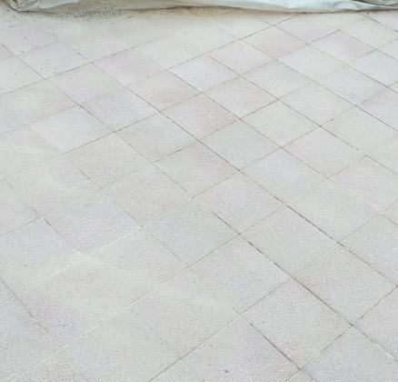 Las baldosas rojas de la Calle Las Castañuelas las están rejuntando ¡CON ARENA BLANCA! con lo cual se están volviendo blancas. Las que están sueltas siguen ...