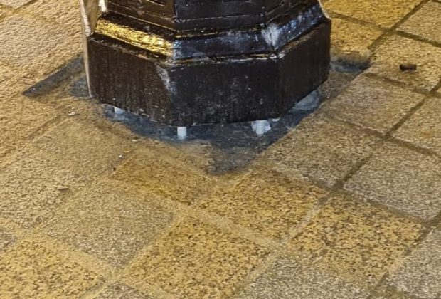 FOTODENUNCIAS: NO SOLO LAS OBRAS DE LA VENTILLA ESTÁN SIN REMATAR, ASÍ ESTÁ RECOGIDA LA FAROLA REPUESTA EN LA PLAZA DE LA PAZ