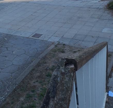 Lamentable estado del pasamanos de madera en esta pasarela por falta de mantenimiento. Estas pequeñas reparaciones como el pegado de baldosas sueltas en las aceras no ...
