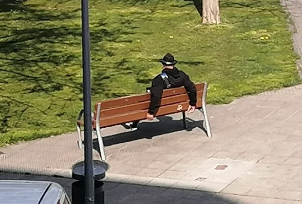 No entiendo que hace sentado en un banco de un parque en plena cuarentena este señor…… Enviada por:En casa y tu?
