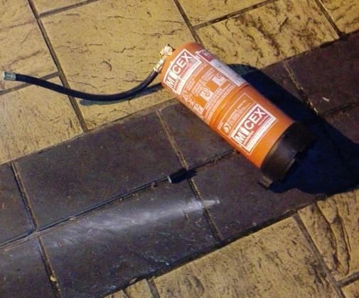 Hay un extintor en medio de la calle. Se sitúa en la plazoleta debajo de los jardines de la vega. Enviada por:Tu amigo y vecino
