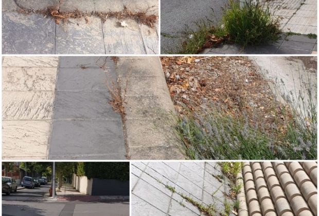 Para qué pagamos a una empresa de limpieza si luego tiene que ir la brigada a limpiar las aceras de hierba. Enviada por:ciudadano