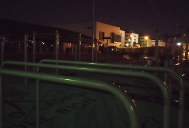 Pedimos al ayuntamiento que haga el favor de encender las luces del parque de calistenia hasta la una o dos de la mañana, por lo menos ...