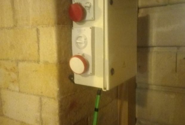 La enésima de la dejadez. Cuadro eléctrico a la altura de acceso de un tierno infante con ganas de enredar. Puede que ni llegue corriente, no ...