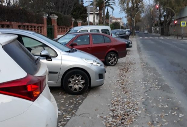 Calle Bretón de los Herreros a la del colegio. La acera llena de coches. Imposible pasar. Enviada por:Cris