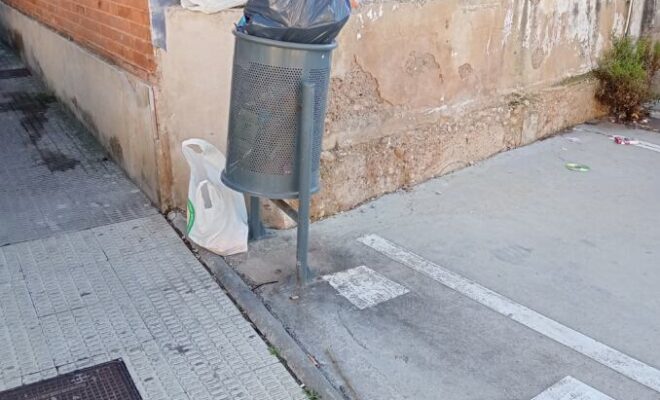 Otros días la papelera llena y tres o cuatro bolsas en el suelo.