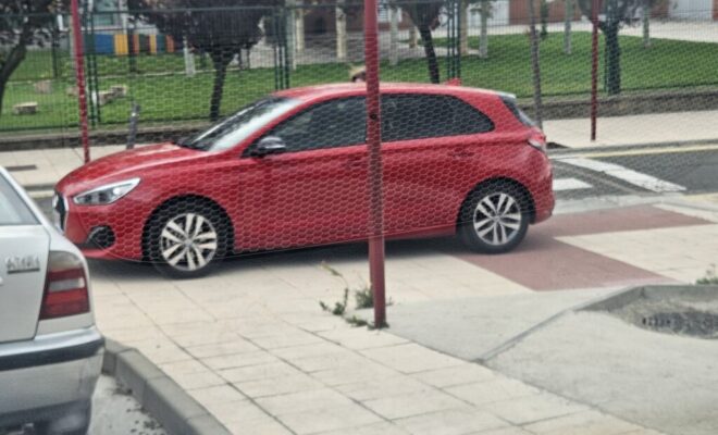 No se puede aparcar ahí porque es una acera, porque está tapando más de medio paso de cebra…seguimos? Es posible que entre su morro y el otro coche apenas haya sitio, además aparte de peatones que anden bien, también hay personas que utilizan sillas de ruedas que necesitan más espacio o carritos de bebés. Es una acera y encima de la acera no se deja el coche.
