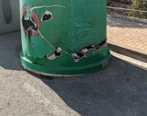 Los contenedores de vidrio, pertenecen a Eco vidrio, el ayuntamiento tiene que dar parte, de los que estén en mal estado, lo mismo que con los otros contenedores, cartón etc etc