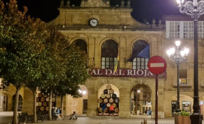 Otro edificio con las luces a pagadas. El banco de España y el Bretón las mantienen encendidas.