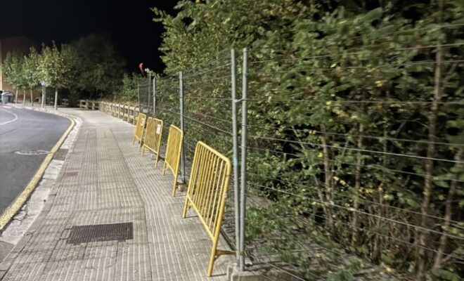 No solo es la barandilla, toda la fila de setos del parque Iturrimurri ocupa gran parte de la acera siempre. solo se corta una vez al año y cuando ocupa media acera.