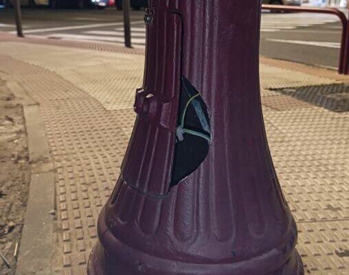 Esta por lo menos tiene rota la puerta , hay una farola en la calle Juan Carlos a la altura de la tienda del moro que cualquier día se desploma y en la calle Santa Lucía hay unas barandillas que tienen opsidada varias bases , a quien le competa del ayuntamiento que levante el trasero de la potrona y revise el estado mobiliario .