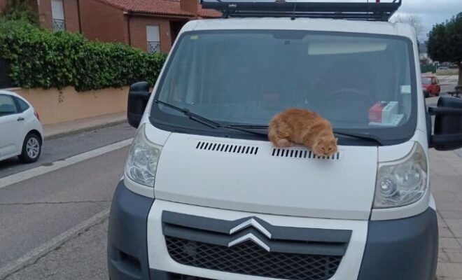 Como es habitual en ellos se ponen encima del capo de los coches o incluso se introducen en el motor a pasar la noche… Con el consiguiente peligro de rayar toda la pintura o incluso de matar al animal sin querer rompiendo el motor del coche…