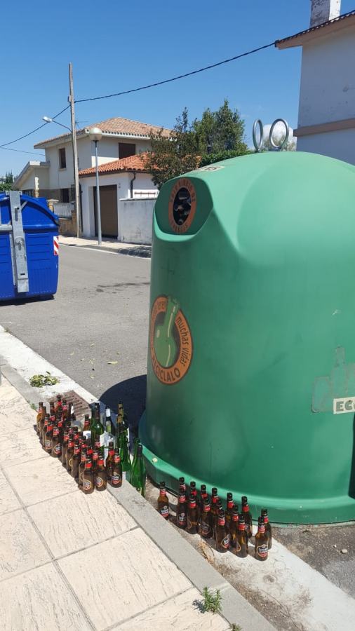 ¿No ves que el agujero del contenedor está a tope de botellas?¿Cómo quieres que las dejen, tiradas y rotas? Bastante han hecho con colocarlas bien para que las recojan.