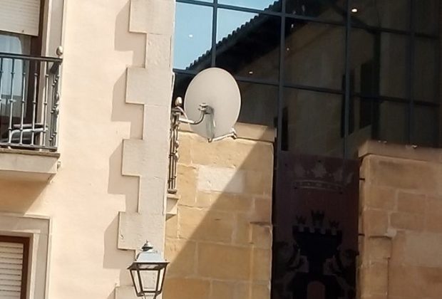 Con dos cojones, una antena de esas del satélite, en la fachada y puerta de acceso del Ayuntamiento en pleno casco histórico. Lleva ya unas cuantas ...