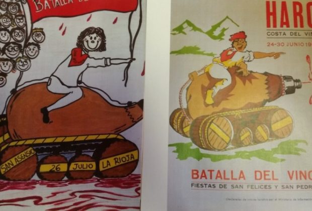 Gran parecido entre el cartel de la batalla del clarete de San Asensio y uno antiguo de la batalla del vino de Haro. Fotodenuncia enviada por ...