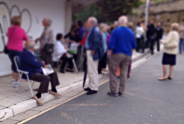 Un año más, personas haciendo cola desde las 8:00 de la mañana en las piscinas de El Ferial para poder guardar su hamaca durante el periodo ...