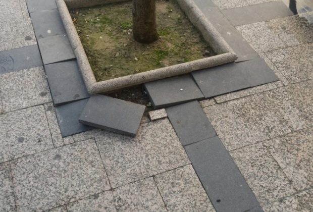 Durante más de un año, estas baldosas de la Plaza de la Paz están levantadas, todo el mundo lo ve. Esto puede provocar caídas a personas ...
