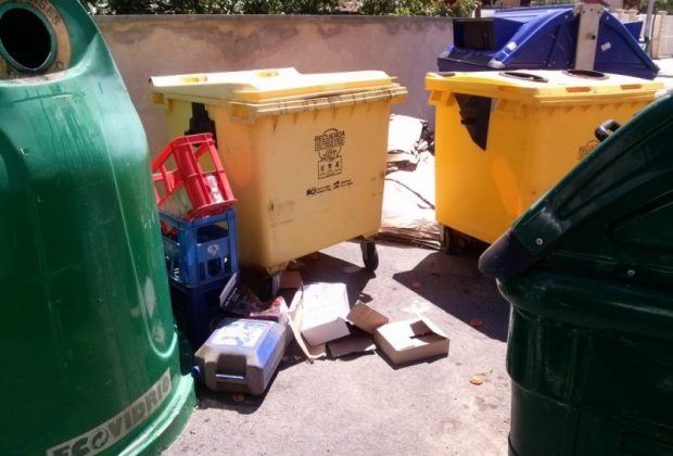 Este aspecto presentan los contenedores de la Calle Nuestra Sra. de Begoña esquina con Camino Alméndora, desde hace días. Contenedores descontrolados, basura por el suelo y ...