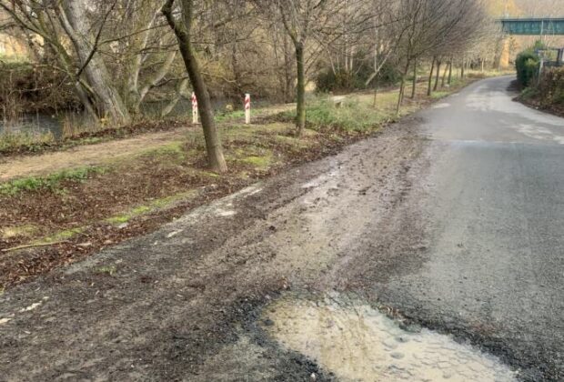 Esta fuga de agua lleva unos cinco años de tanto pasar los coches y camiones. Se ha hecho un agujero enorme hasta qué punto vamos a ...