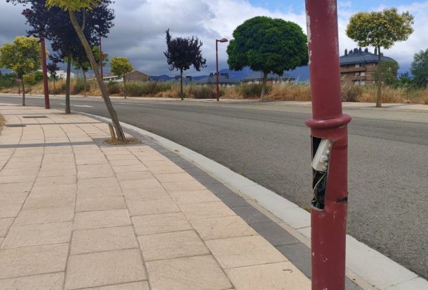 Entre la denuncia del árbol partido de cuajo y la papelera arrancada de cuajo a pocos metros unos de otros está esta pobre farola. El descerebrado ...