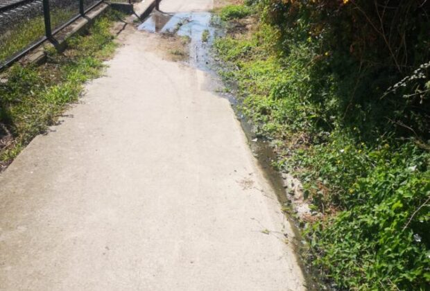 Aguas fecales cruzando el camino que baja desde la antigua bolera hasta el Ferial Enviada por:Enjuto
