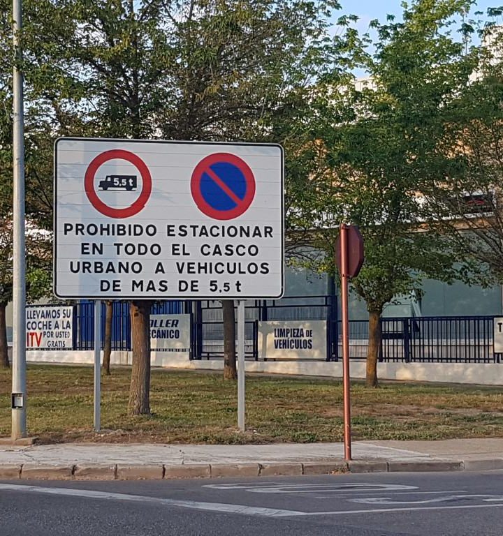 Y prohibido aparcar todo vehículo que pase de 5,5 Tn